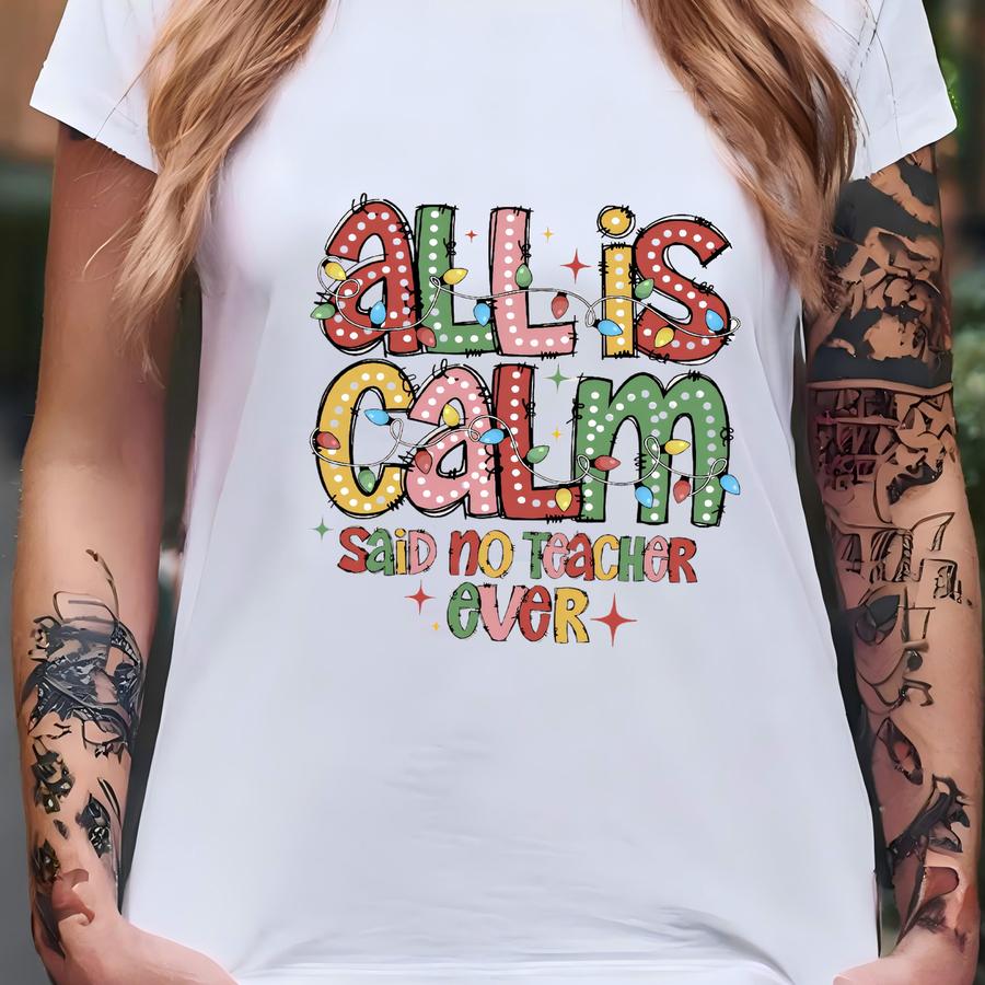 ® All Is Calm Said No Teacher Ever Shirt, Teacher Christmas Shirt, Winter Teacher Apparel, Teacher Team Shirt, Teacher Quotes T-shirt