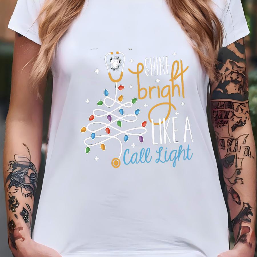 Christmas Nurse Sweatshirt, Shine Bright Like A Call Light, Nurse Holiday Hoodie, Stethoscope Christmas Tree, Rn Christmas Sweat, Xmas Nurse T-shirt