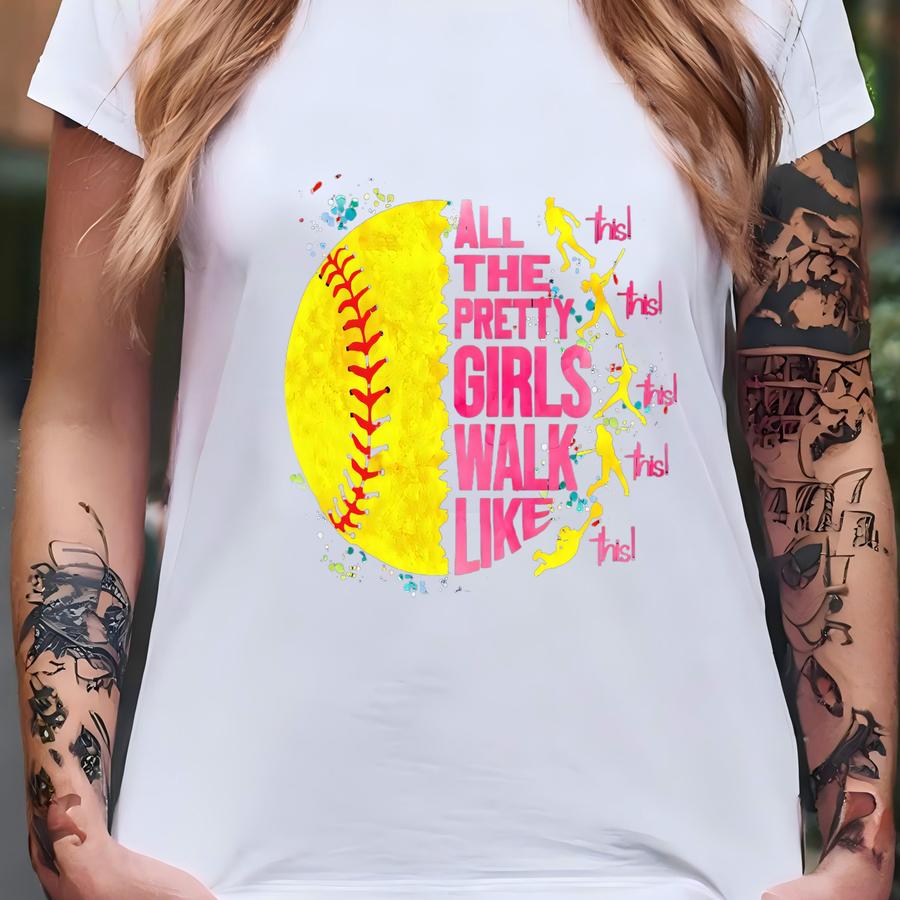 All The Pretty Girls Walk Like This Shirt, Softball Shirt Woman, Softball Player Gift, Softball Lover Tshirt, Game Day Shirt, Girls Softball T-shirt