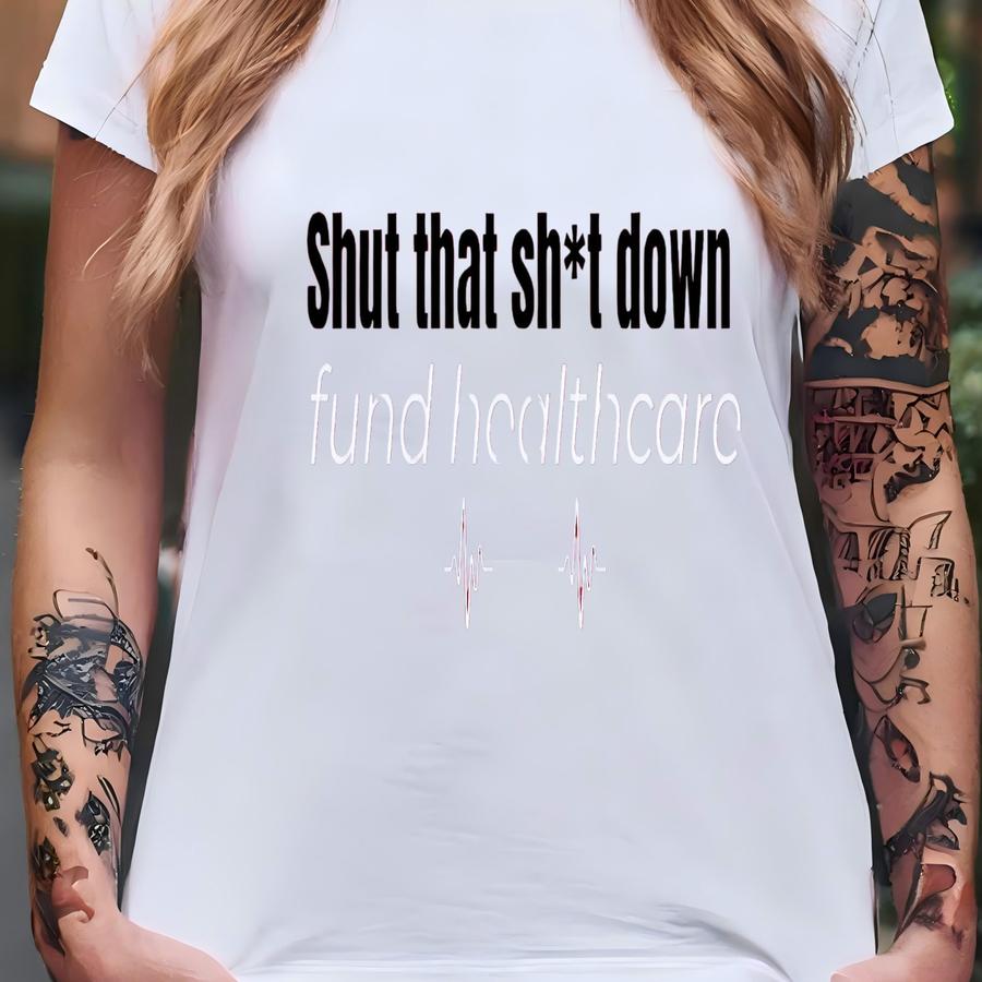 Shut That Sh*t Down Fund Healthcare Sweatshirt, Political Shirt, Fund Healthcare Activist Sweatshirt Long Sve Protest Shirt Gift Hoodie T-shirt