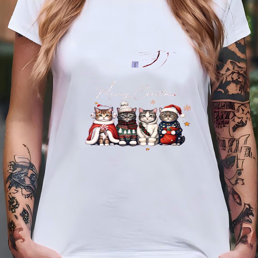Christmas Cat Sweatshirt Meowy Christmas Santa Hat Cat Tee Cat Lover Christmas Shirt Gift Happy Holiday Kitty Black Cat Hoodie Mom Gift Tee T-shirt