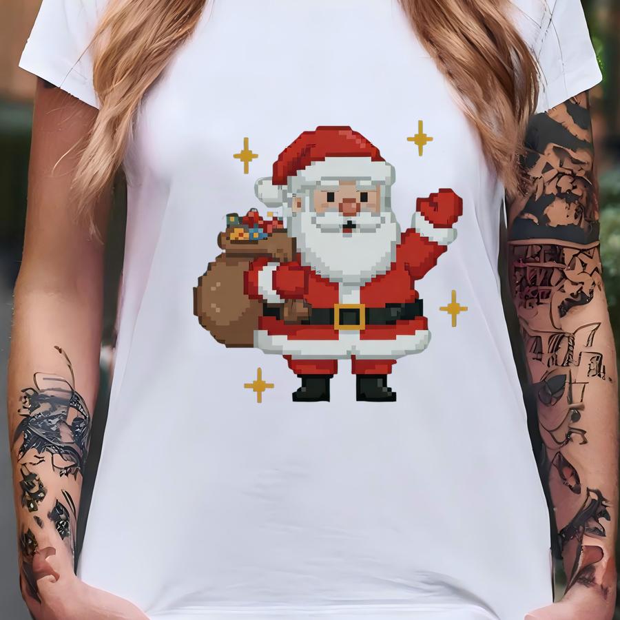 Ugly Christmas Santa Pixel Art Hoodie, Funny Retro Gamer Christmas Sweatshirt, Vintage Santa Holiday Hoodie, Funny Gamer Christmas Gift Tee T-shirt
