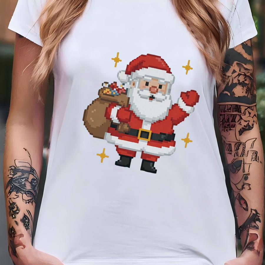 Ugly Christmas Santa Shirt, Pixel Art Santa Long Sve Shirt, Vintage Funny Holiday Shirt, Retro Gamer Christmas Shirt T-shirt