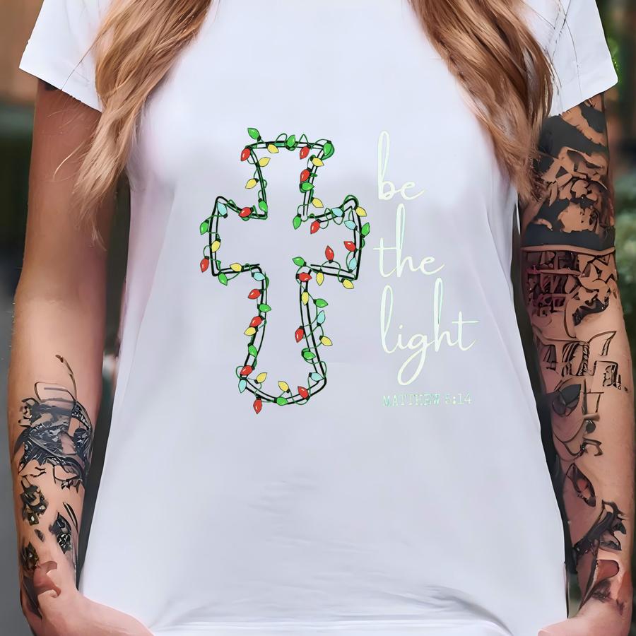 Be The Light Christmas Sweatshirt, Religious Cmas Sweatshirt, Christian Holiday Sweater, Christmas Cross Faith Based Gift, Festive Hoodie T-shirt