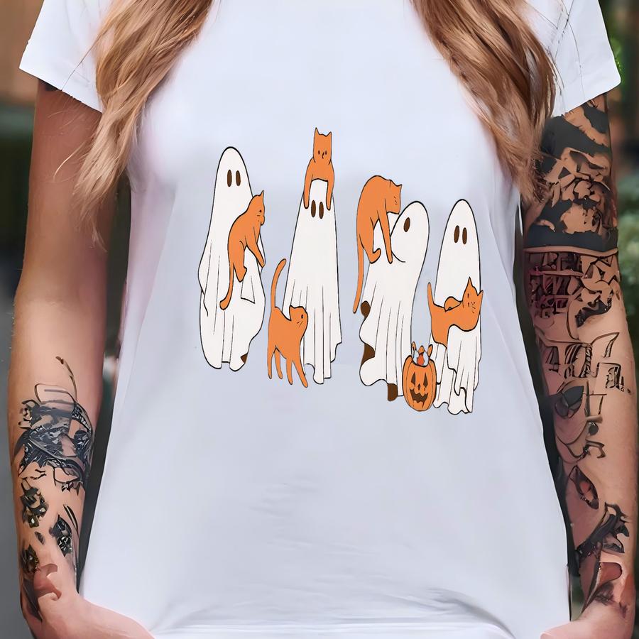 ® Ghost And Cat Hoodie, Halloween Ghost Cat Shirt, Spooky Orange Cat Shirt, Cat Lover Halloween Gift, Spooky Season Cat Shirt T-shirt