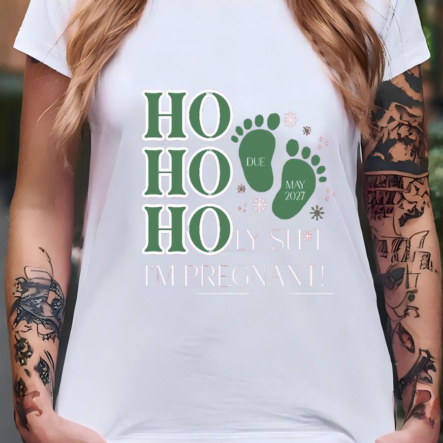Christmas Pregnancy Announcement Shirt Funny Ho Ho Holy I'm Pregnant Couples Holiday Reveal Sweatshirt For Mom And Dad To Be Surpise T-shirt