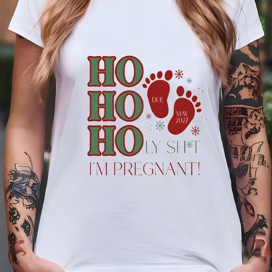 Christmas Pregnancy Announcement Shirt Funny Ho Ho Holy I'm Pregnant Couples Holiday Reveal Sweatshirt For Mom And Dad To Be Surpise T-shirt