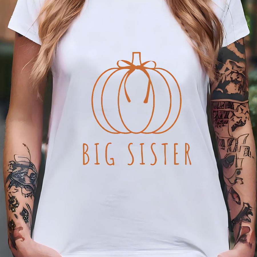 Custom Png / Svg File Big Sister Pumpkin Shirt Little Big Brother Tee Fall Pregnancy Announcement Shirt For Big Sibling Matching Sibling T-shirt