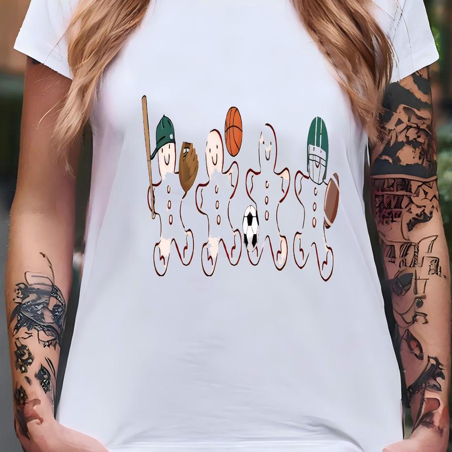 Sporty Gingerbread Men Christmas Shirt For Boys Christmas Baseball Sweatshirt Baby Holiday Sports Tshirt Xmas Basketball Football Soccer Tee T-shirt