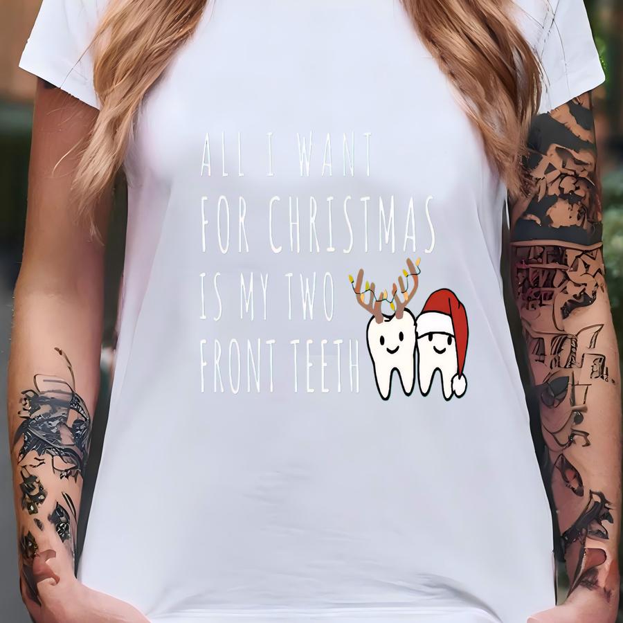 All I Want For Christmas Is My Two Front Teeth Funny Holiday Shirt For Kids Youth Xmas Tshirt Boys Santa Shirt Girls Christmas Tee Cute Tee T-shirt