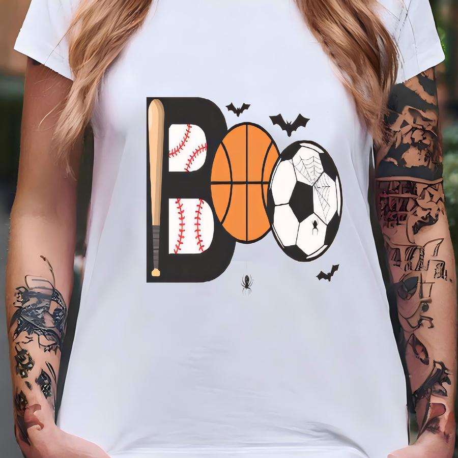 Boo Sporty Halloween Shirt Fall Baseball Sweatshirt Fall Baby Bodysuit Basektball Tee For Autumn Spooky Cool October Pumpkin Patch Toddler T-shirt