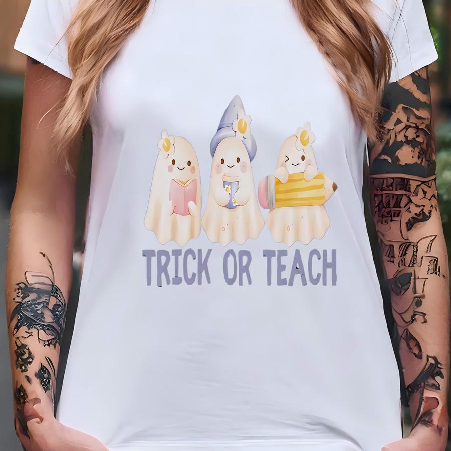 Trick Or Teach Halloween Shirt For Teachers Fall Tshirt For Classroom Halloween Ghost Shirt Cute Ghost Tee For School Halloween Spooky Shirt T-shirt