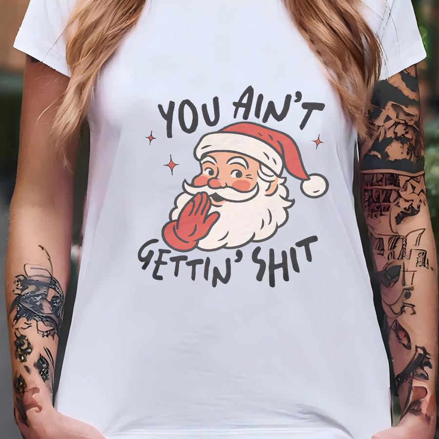 Retro-feel Ringer Hoodie: You Ain't Gettin' Sh*t Santa - Unisex Cotton T-shirt