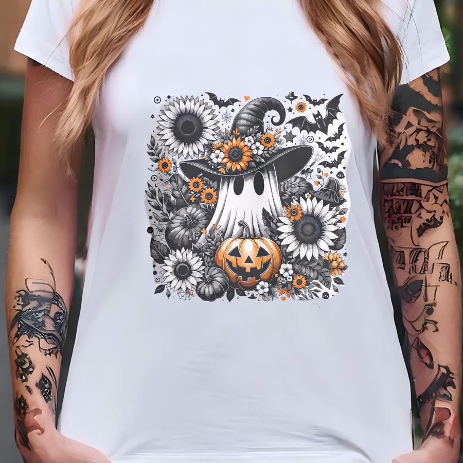 Boho Ghost Halloween Sweatshirt: Women's Floral Pumpkin Jumper T-shirt