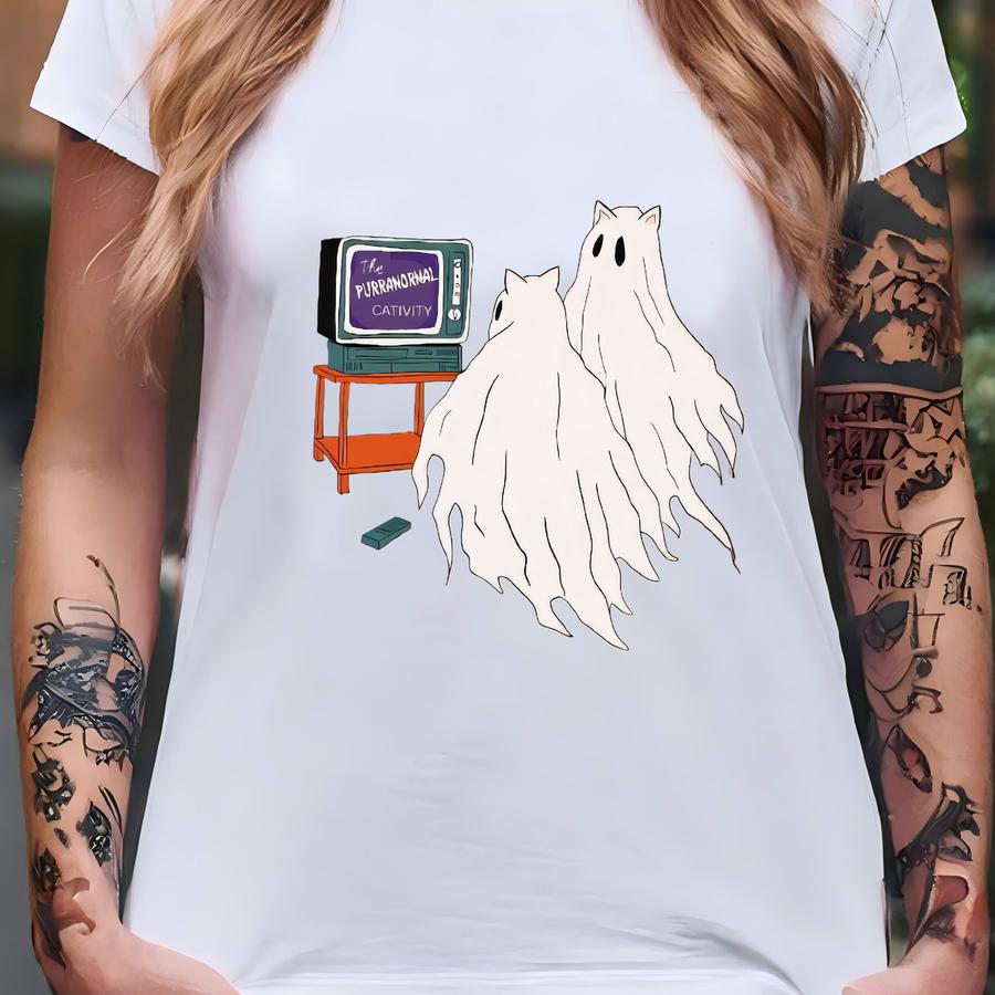Purranormal Cativity Ringer Hoodie: Retro Halloween Graphic Tee T-shirt