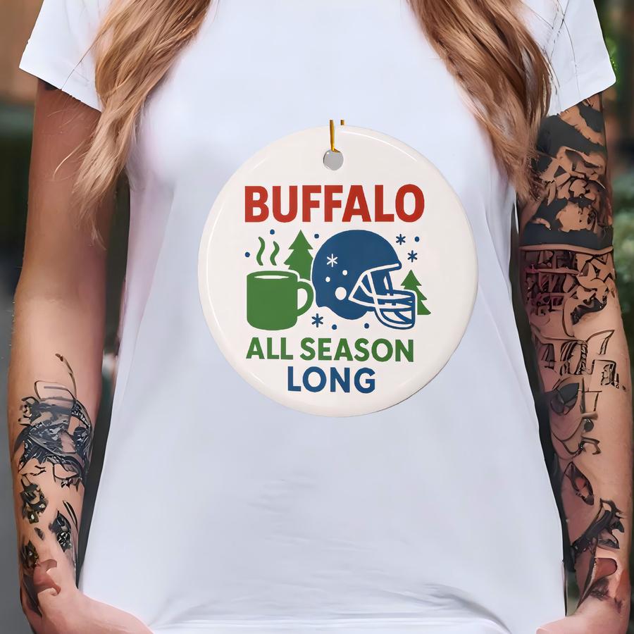 Buffalo All Season Long Christmas Ceramic Ornaments, Sports Fan Holiday Decor, Tree Decor, Double-sided, Decorative Ornaments T-shirt