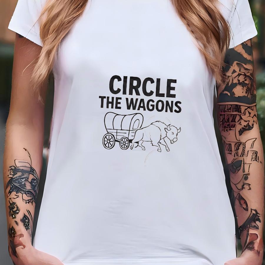 Circle The Wagons Buffalo Shirt Unisex Heavy Cotton Tee Casual Gift For Friends Everyday Wear Vintage Style Fun Graphic Hoodie T-shirt