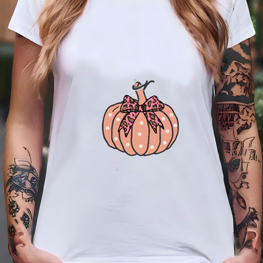 Pumpkin Bow Tee Women Gift Green Shirt ® Tee Gift For Homebody Casual Cozy Tshirt Halloween Season Home Outfit Loose Shirt T-shirt