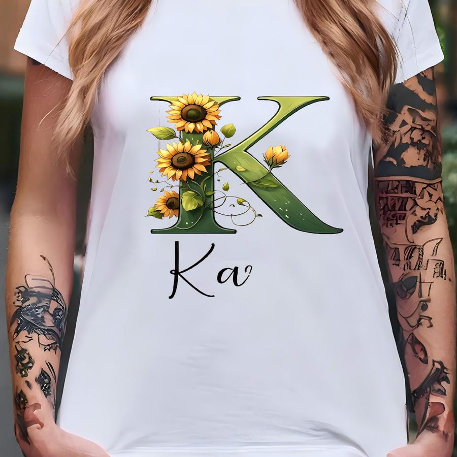 Suower Monogram Ceramic Mug, Personalized Initial Letter Coffee Cup, Gift For Nature Lover, Customized Floral Tea Mug, Birthday Present, T-shirt