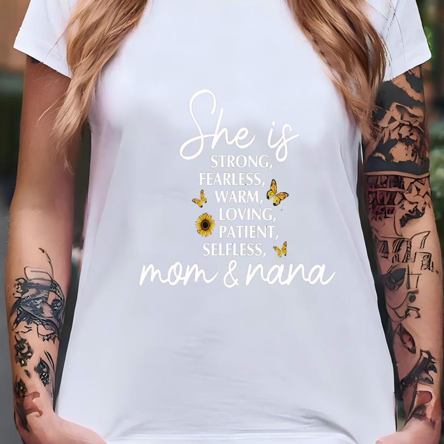 She Is Mom Nana Shirt, Mama Tshirt, She Is Strong Fearless Warm Loving Patient Selfless Shirt, Happy Mothers Day Shirt, New Mom New Nana Tee T-shirt