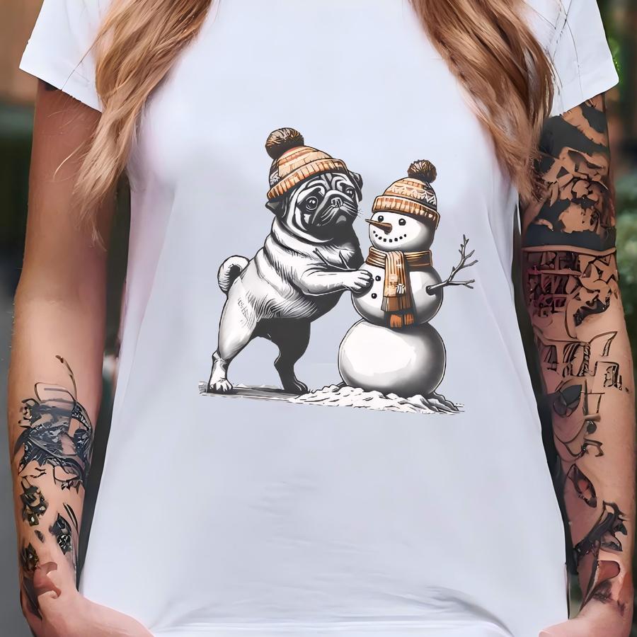 Pug Christmas Sweatshirt, Pug Mom Shirt, Pug Dog Winter Snowman Crewneck, Pug Mama Holiday, Christmas Gift For Pug Owner Lover T-shirt