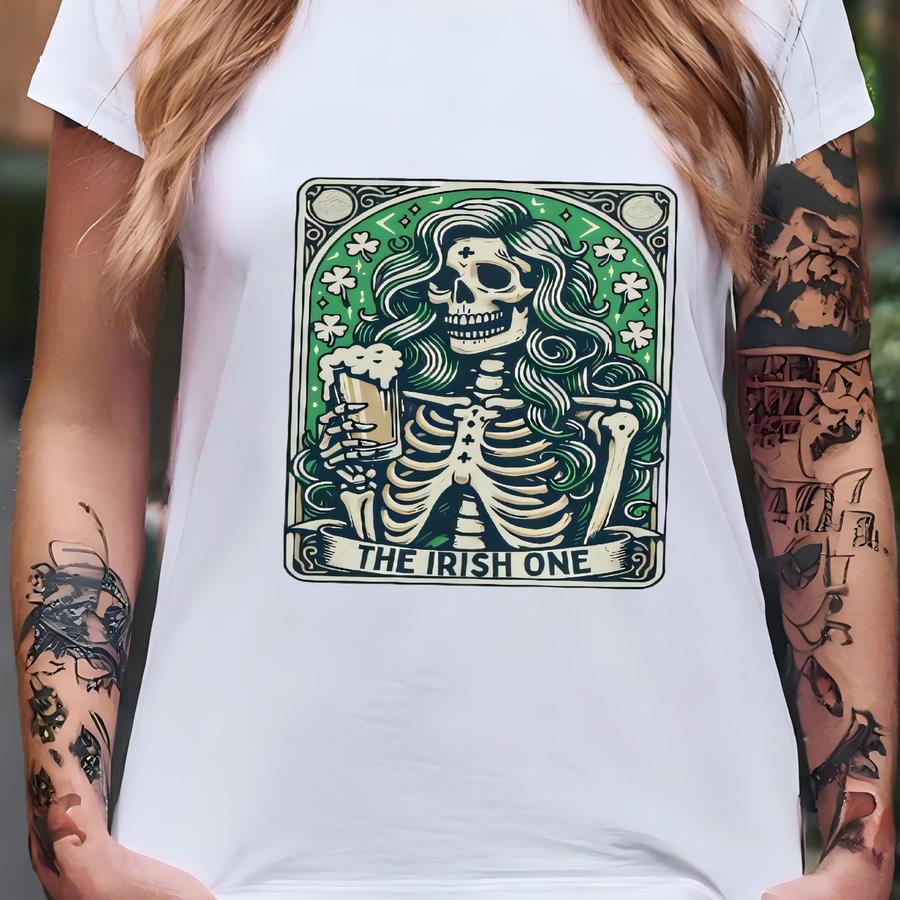 St Patricks Day Shirt, ® Irish One St Patricks Day Tarot Card Sweatshirt, Funny Irish Shirt, Skeleton St Paddys Day Crewneck T-shirt