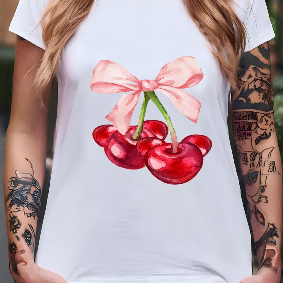 Coquette T Shirt, Cherry Bow Shirt, Girlie Y2k Apparel, Cute World Girls Tshirt, Mouse Lover Gift, Youth Girl Tee T-shirt