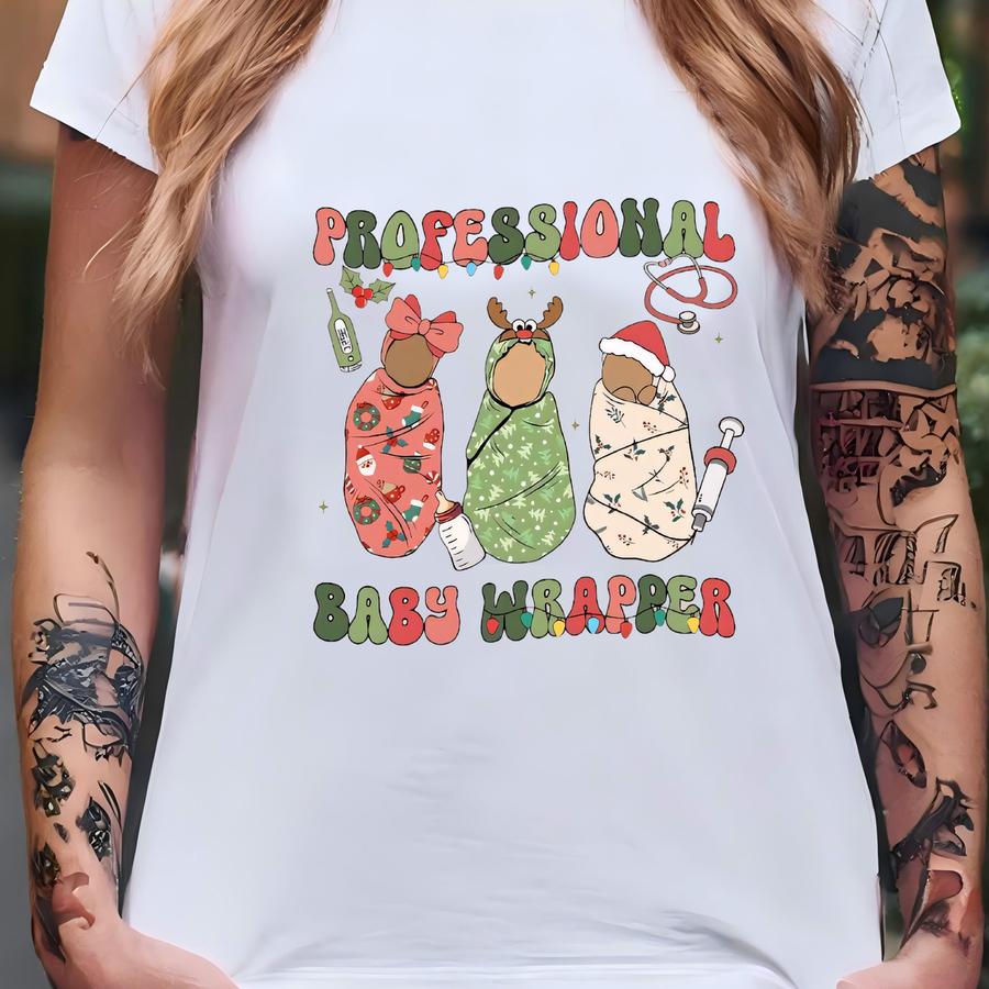 Professional Baby Wrapper Sweatshirt, Nicu Nurse Christmas Shirt, Hospital Holiday Party Cute T-shirt