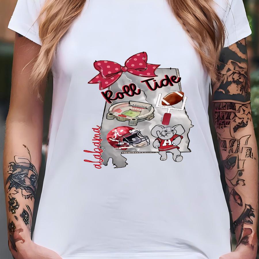 Coquette Bow Bama Hoodie, Women Football Shirt, Roll Tee, Game Day, Game Lover Apparel T-shirt