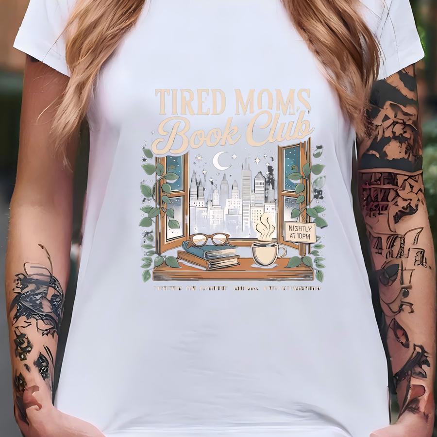 ® Tired Moms Book Club Hoodie, Coffee Chaos Chapters Graphic Tee, Funny Book Lover Gift For Exhausted Moms, Bookworm Gift Tee T-shirt