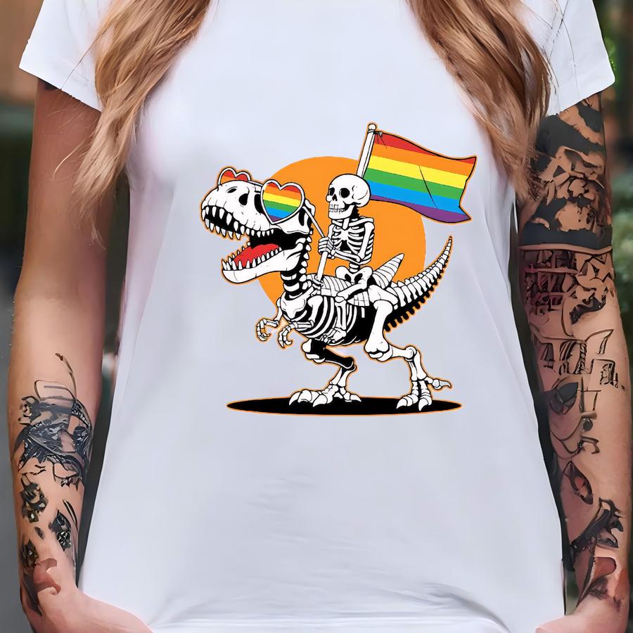 ® Lgbt Skeleton Shirt, Skeleton Pride Shirt, Gay Skeleton Shirt, Dinosaur Pride Hoodie, Queer Pride Tee, Lgbtq Flag Shirt T-shirt