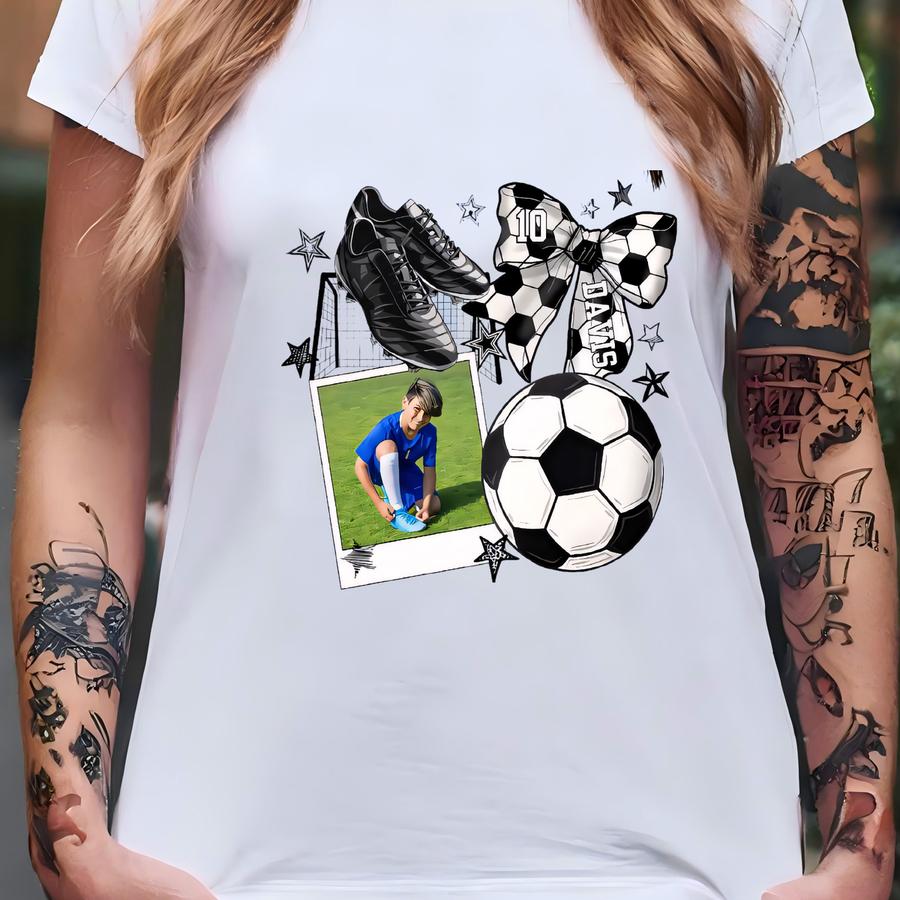Custom Soccer Photo With Name Insert Shirt, Soccer Shirt, Soccer Game Day Shirt, Soccer Coquette Bow Shirt,soccer Game Day Tee,soccermom Tee T-shirt
