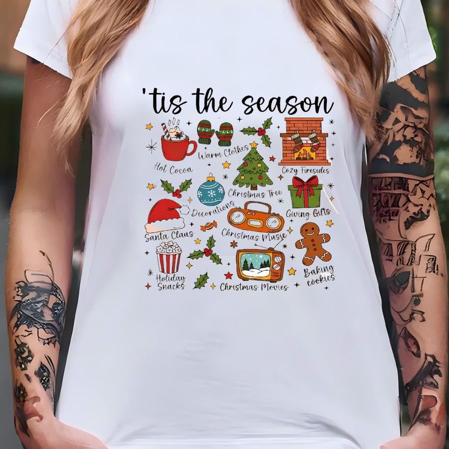 Retro Christmas Collage Shirt: 'tis The Season Tee, Cute Holiday Graphic Tee T-shirt