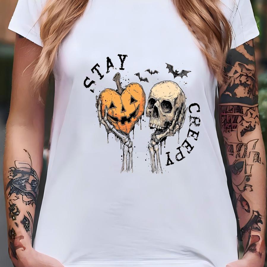 Retro Skeleton Sweatshirt: Halloween Skull Pumpkin Creepy Crewneck T-shirt