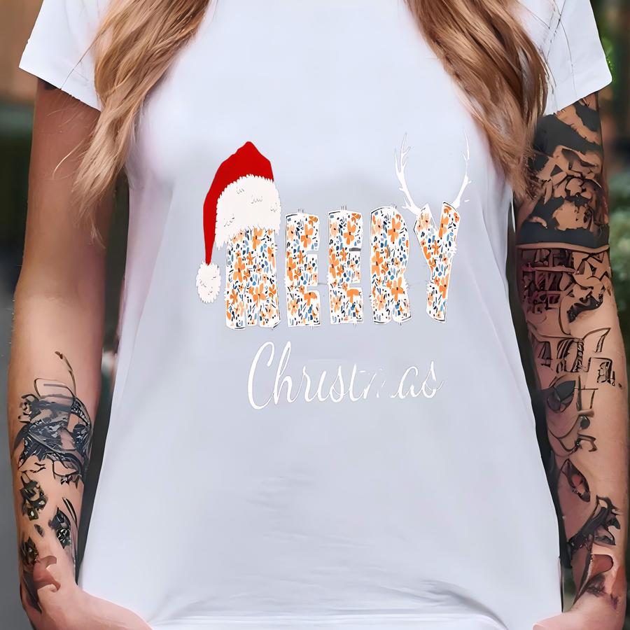 Antler Floral Merry Shirt: Cheerful Holiday Reindeer Letter Style T-shirt