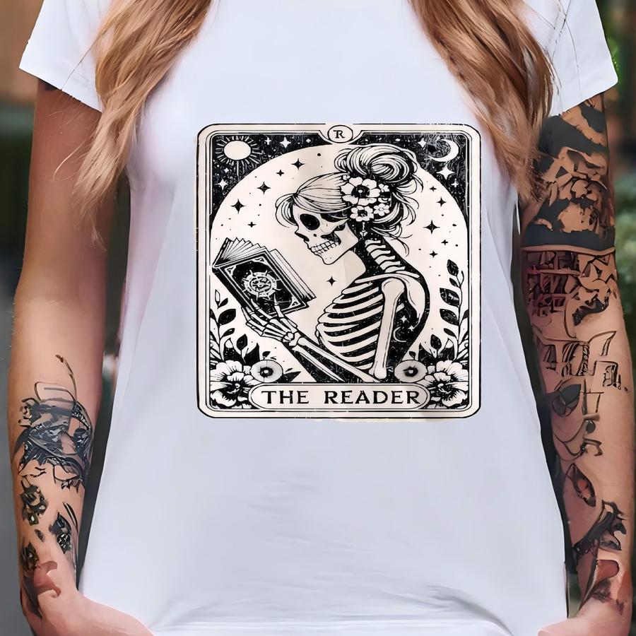 The Reader Tarot Card Sweatshirt: Skeleton Book Lover Pullover, Witchy Occult Reading T-shirt