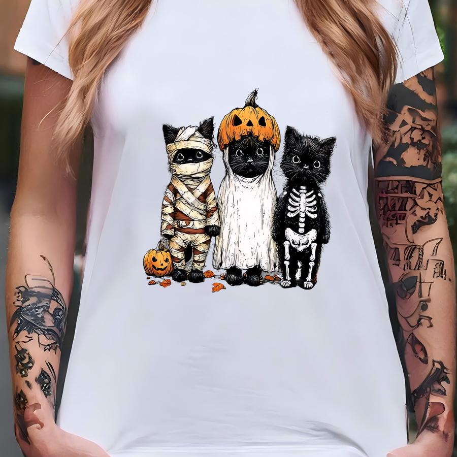 Retro Halloween Shirt: Spooky Cats In Costumes T-shirt