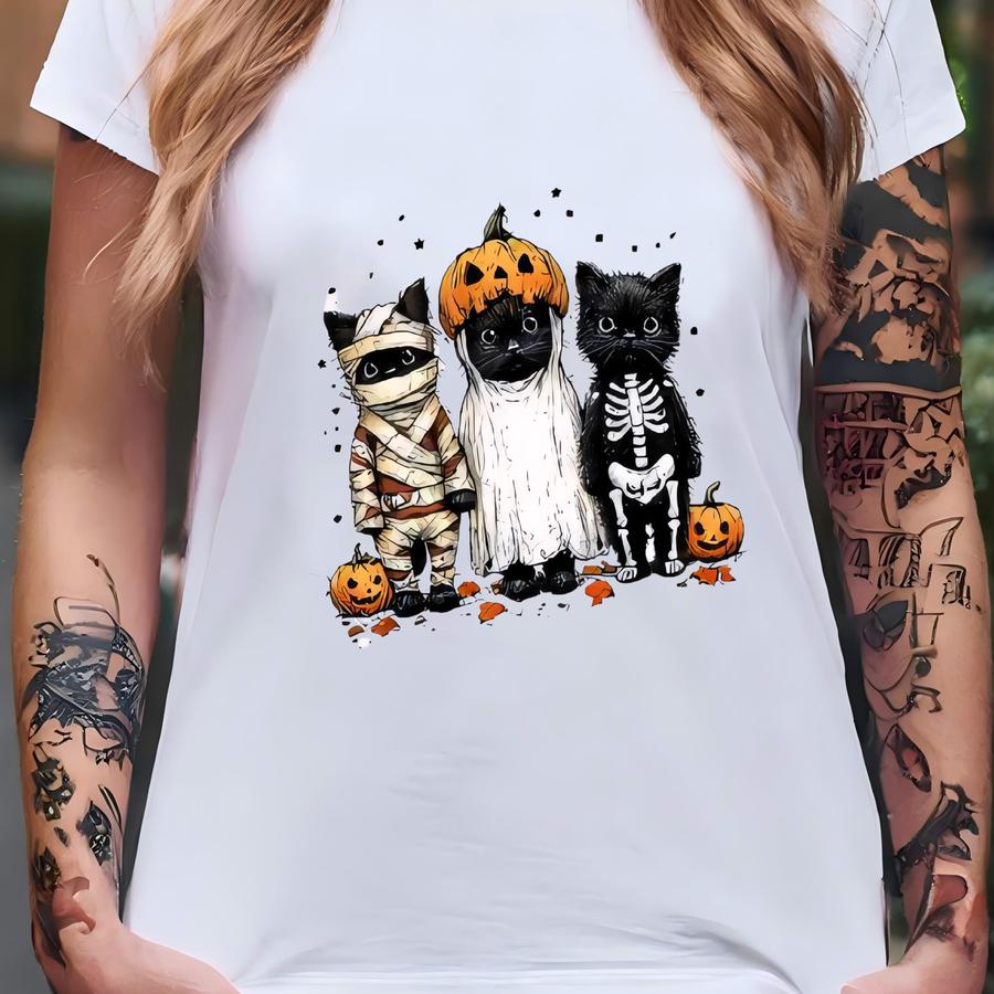 Retro Halloween Cat Shirt: Mummy, Ghost And Skeleton Costume T-shirt