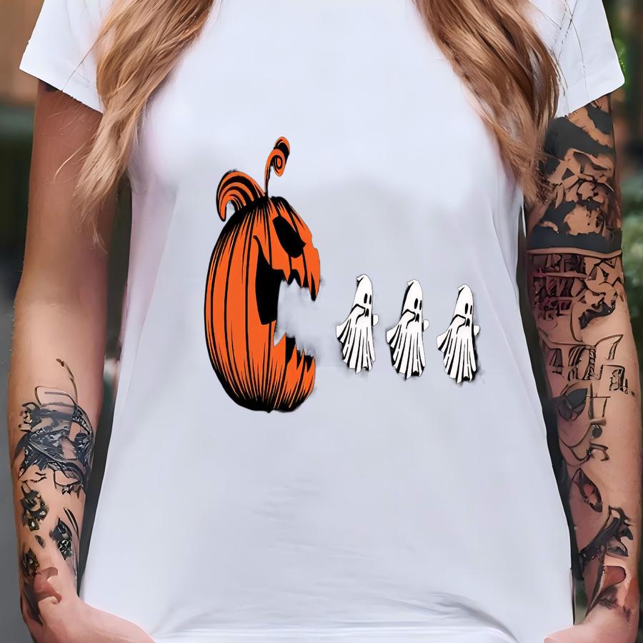 Pumpkin Chasing Ghosts Hoodie: Funny Halloween Theme For Spooky Season T-shirt