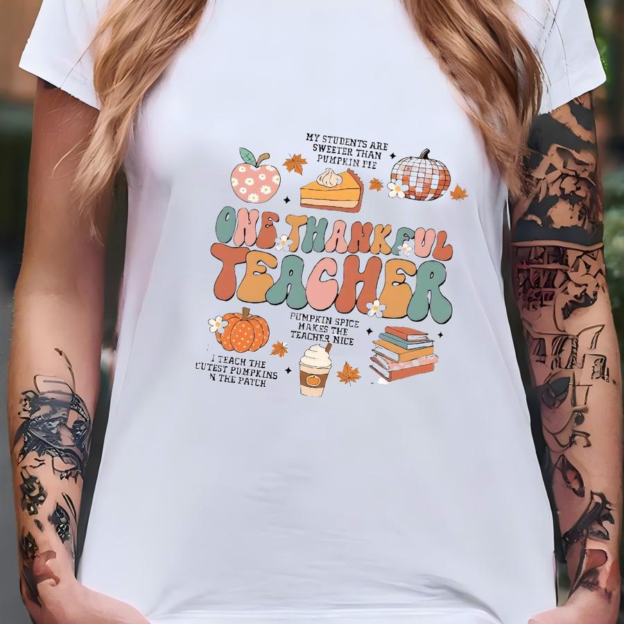 Custom Teacher Fall Shirt One Thankful Teacher Shirt, Teacher Thanksgiving Shirt, Teacher Pumpkin Retro Autumn, Teacher Appreciation Gift T-shirt