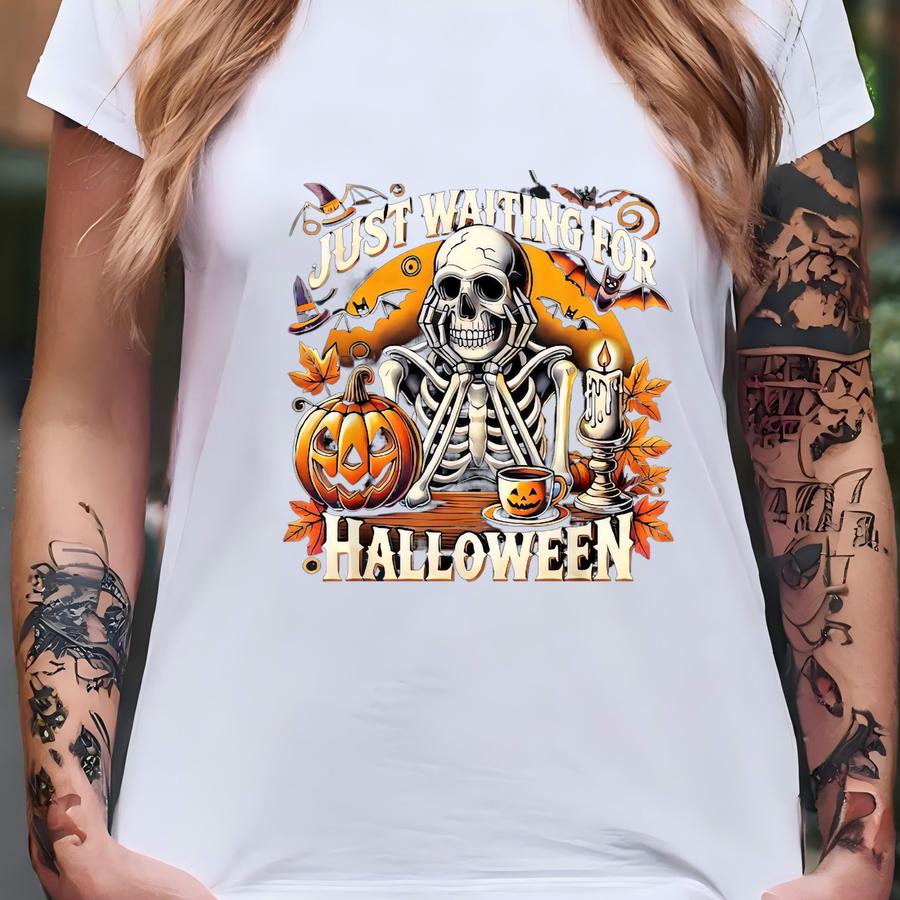 Retro Halloween Graphic Crop Hoodie - Spooky Skeleton Pumpkin T-shirt