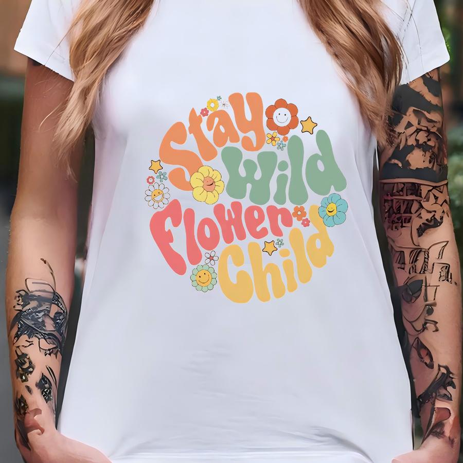 Stay Wild Flower Child Toddler Shirt: Retro Natural Bodysuit T-shirt