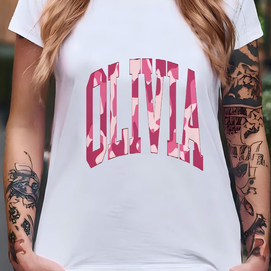 Custom Pink Camo Varsity Name Shirt For Girls – Personalized Toddler Youth Hoodie T-shirt