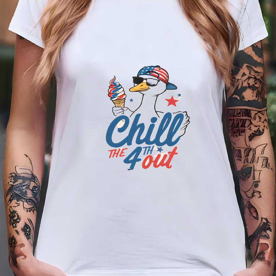 Boys 4th Of July Shirt, Checkered Chill The 4th Out Shirt, Funny Duck Fourth Of July Kids Shirt, Patriotic Independence Day Toddler Boy Tee T-shirt