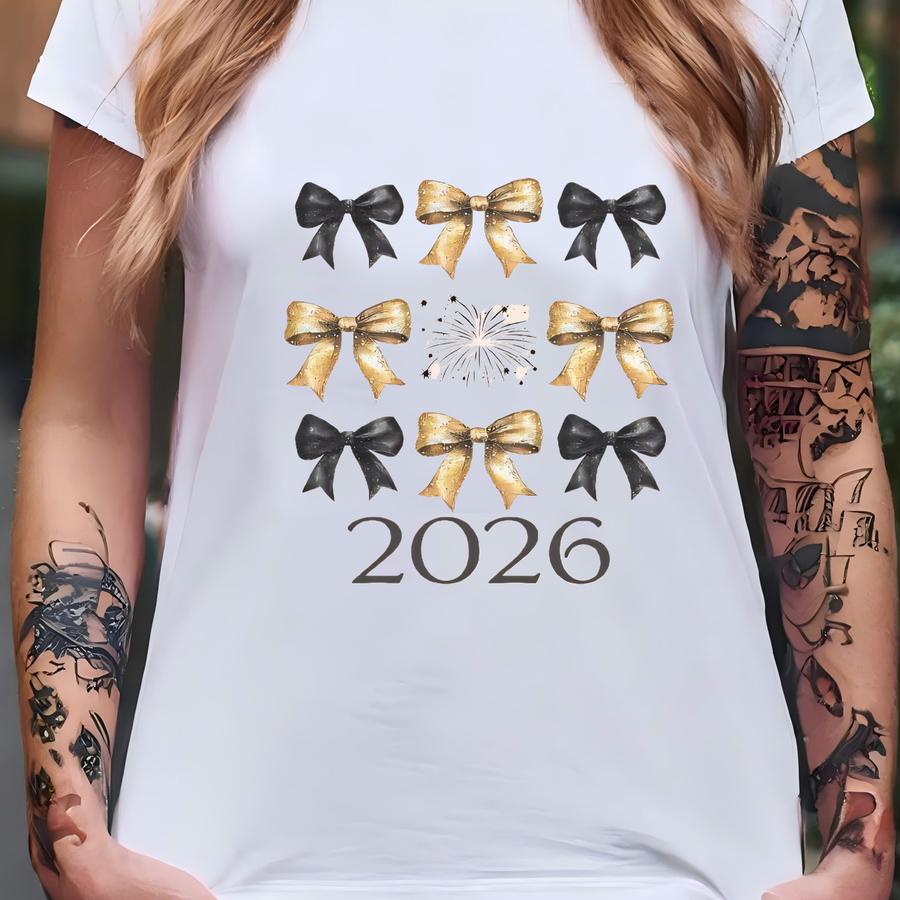 2026 New Year's Bows Kids Shirt, Toddler New Year's Eve Party Shirt, Black And Gold Bow Shirt, Coquette Hoodie, 2026 Shirt, Girls Bow Tee T-shirt
