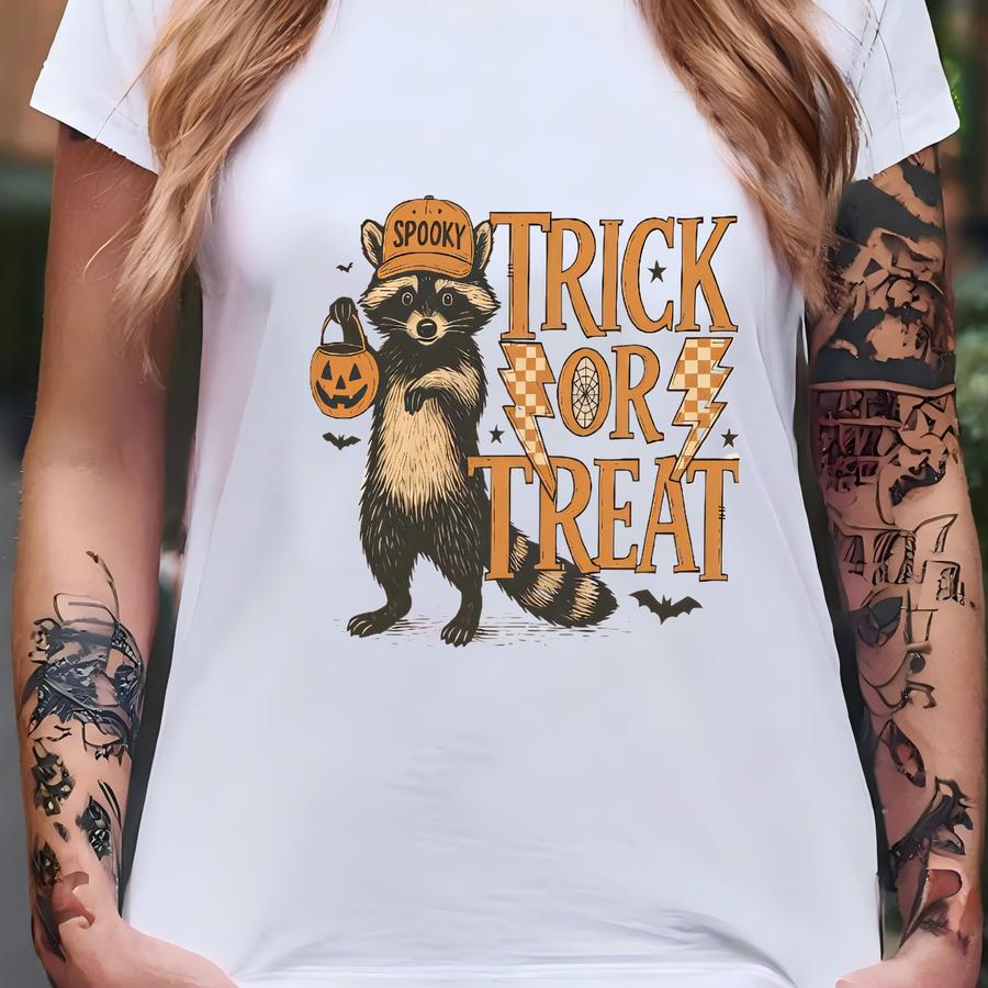 Trick Or Treat Halloween Kids Shirt, Funny Boys Halloween Shirt, Vintage Raccoon Shirt, Orange Toddler Tee, Checkered Fall Hoodie T-shirt