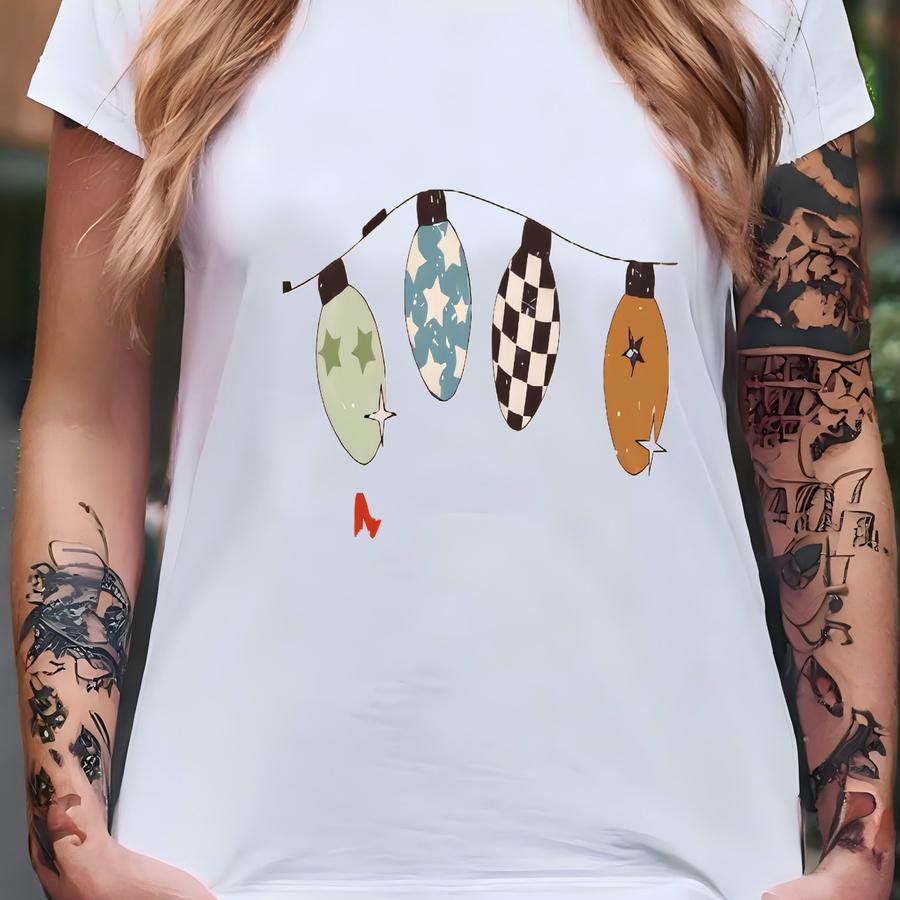Boys Christmas Shirt, Merry Dude Kids Tee, Cute Boys Christmas Lights Shirt, Checkered Retro Bulbs, Natural Holiday Hoodie For Toddler Boy T-shirt