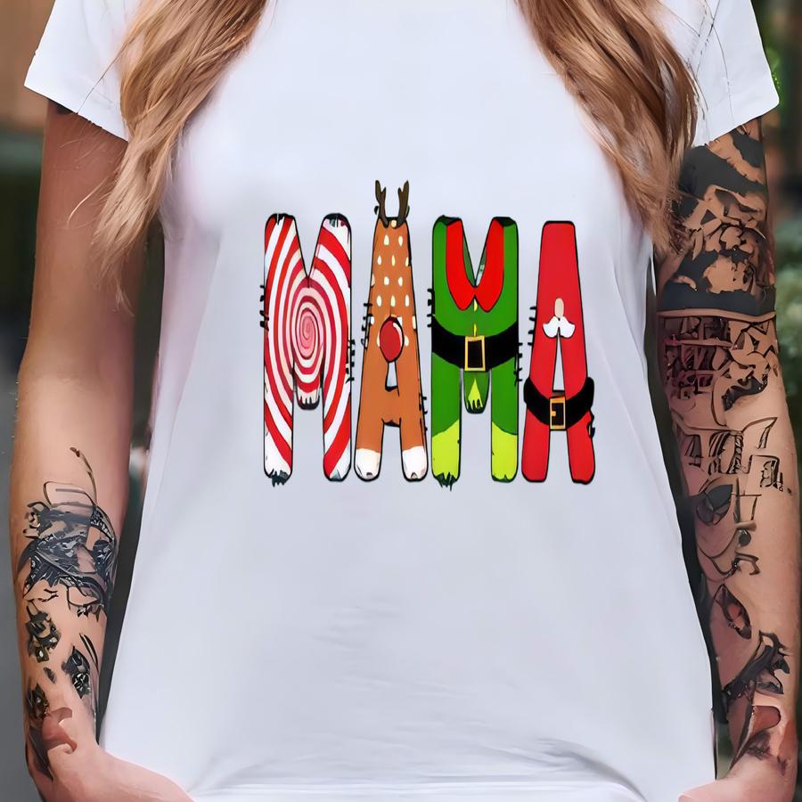 ® Personalized Christmas Mama With Kid Name Shirt, Custom Grandma Gift, Christmas Ornament, Xmas Mimi Shirt, Holiday Women Tee T-shirt