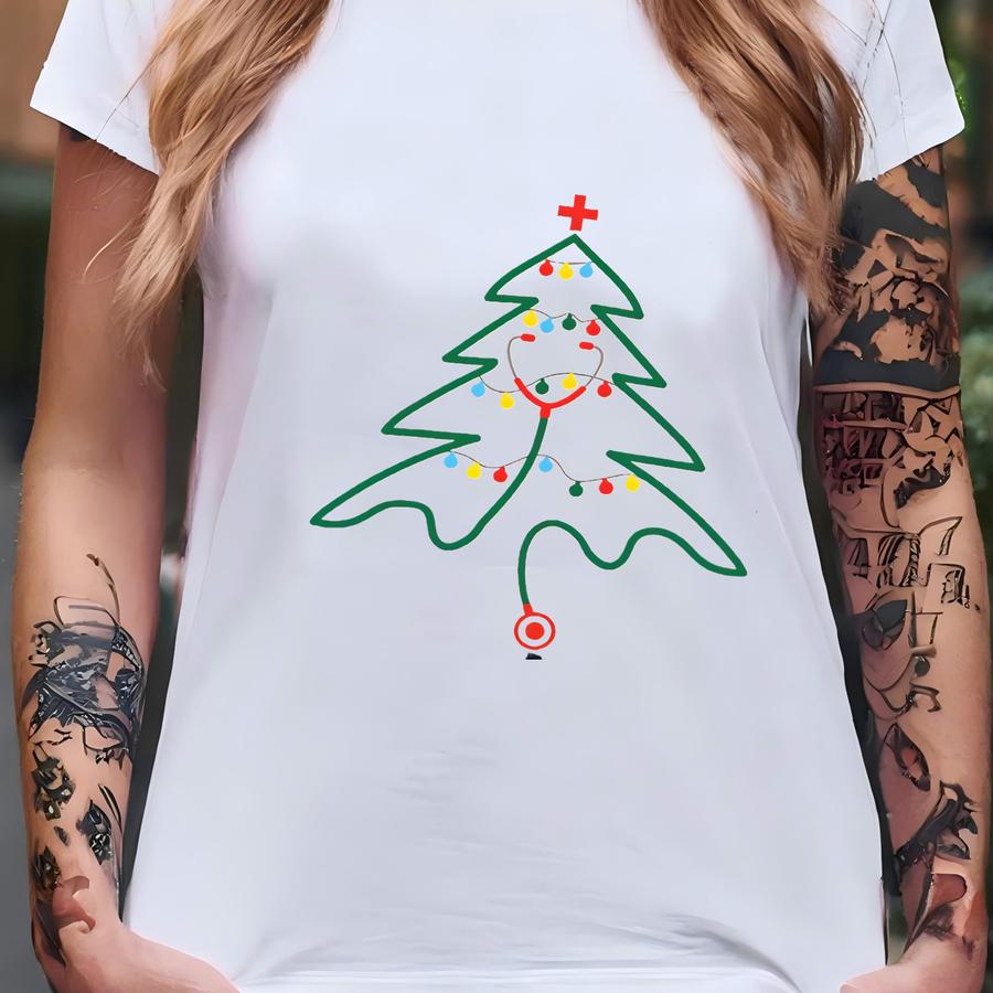 Stethoscope Christmas Tree Shirt, Christmas Nurse Shirt, Holiday Medical Staff Gift, Xmas Doctor Shirt, Medical Worker Gift, Christmas Party T-shirt