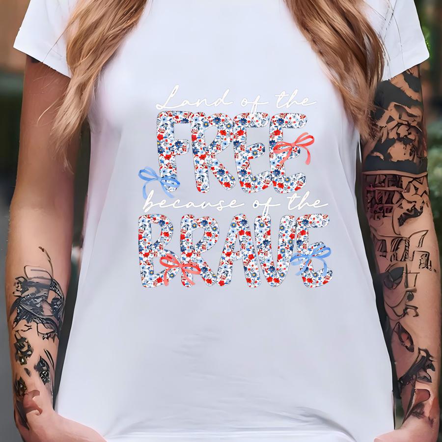 ® Land Of The Free Because Of The Brave shirt, Floral 4th Of July Shirt, Patriotic Women Tee, Independence Day, Free Brave Tee T-shirt